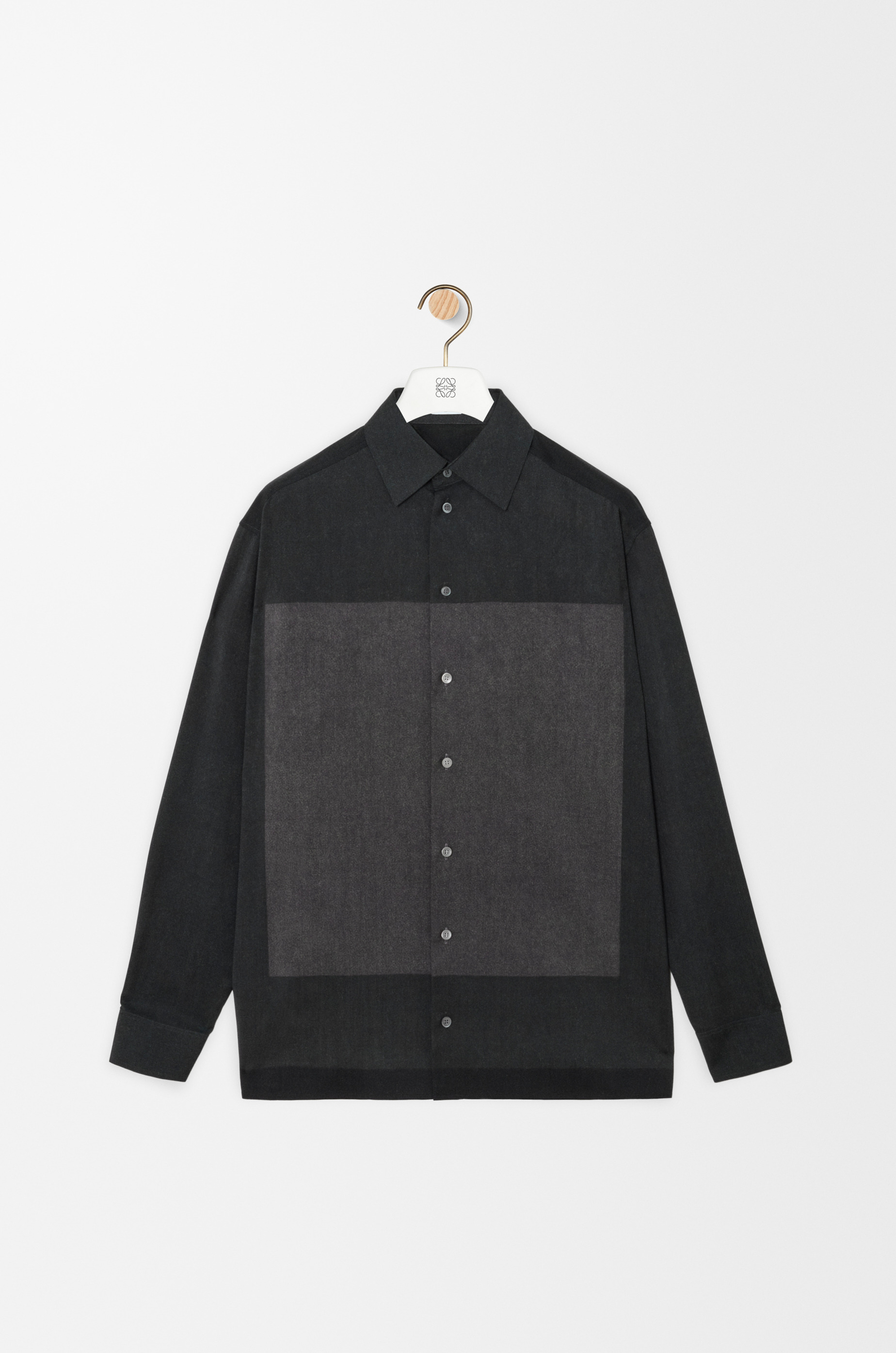 Shirt in lightweight shirting wool featuring placed double-sided digital print squares inspired by Josef Albers's "Homage to the Square" series. This shirt is part of the LOEWE x Albers collection. - Regular fit, regular length - Classic collar - Button front fastening, buttoned cuffs - Anagram embroidery placed at the back Colour: Black/Grey Main material: Wool Weight: 0.2 kg Made in: Italy Materials & care Main Material: 100% wool
