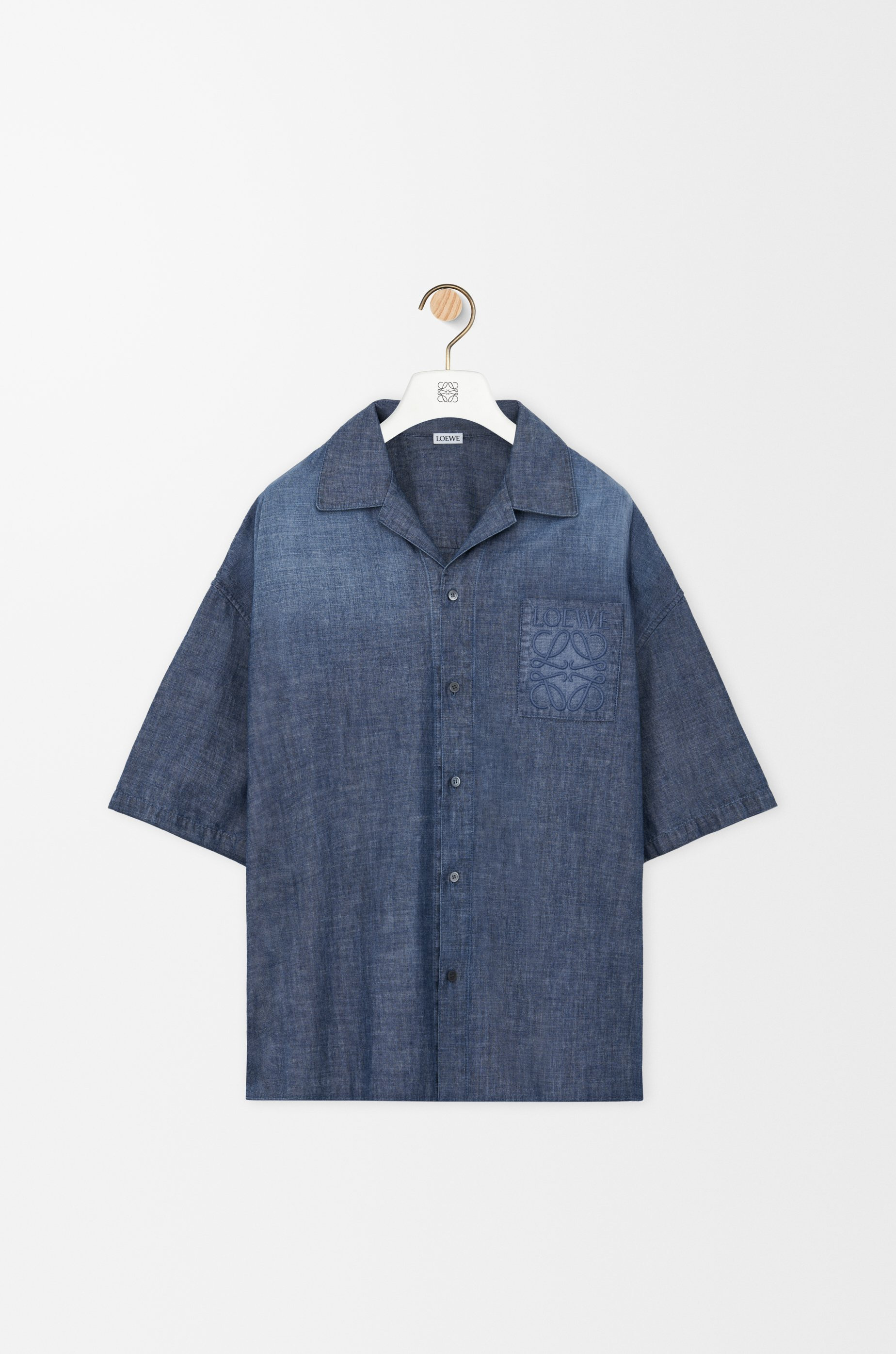 Shirt in lightweight washed chambray. - Relaxed fit, regular length - Camp collar - Button front fastening - Box pleat at the back - Anagram embroidery placed on the chest patch pocket Colour: Washed Blue Main material: Cotton Weight: 0.3 kg Made in: Japan Materials & care Main Material: 100% cotton