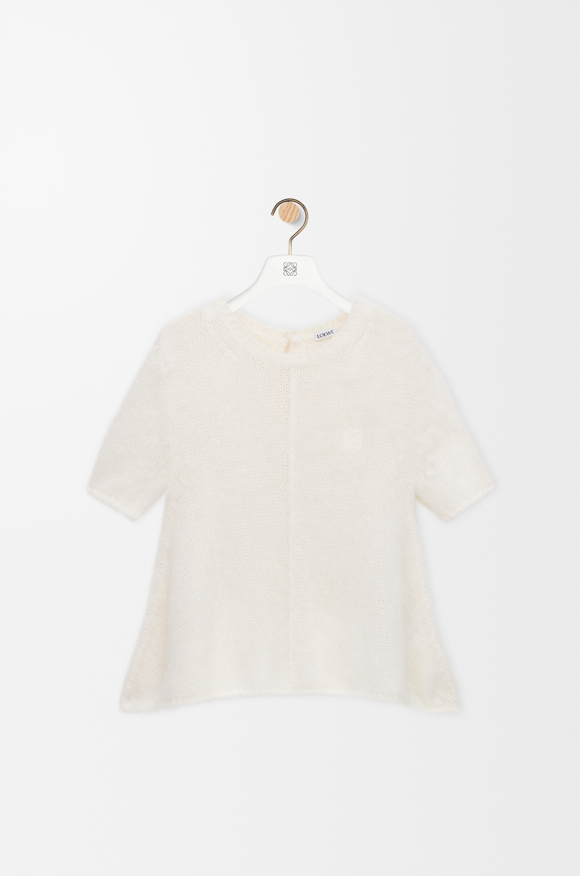 Sweater in medium-weight mohair blend featuring a trapeze silhouette with button fastening at the back. - Regular fit, short length - Round neck - Anagram embroidery placed on the chest Colour: White Main material: Mohair/Polyamid/Wool Weight: 0.3 kg Made in: Italy Materials & care Main Material: 65% mohair 29% polyamide 5% wool 1% elastane