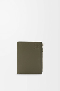 Slim compact wallet in soft grained calfskin. - Six card slots, four slip pockets, one large note pocket - One zipped coin compartment with calfskin pull - Snap button closure - Calfskin lining - Embossed Anagram Colour: Khaki Green Metallic colour: Palladium Main material: Soft Grained Calf Weight: 0.09 kg Height: 11.8 cm Width: 9.3 cm Depth: 1 cm Made in: Spain