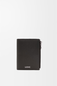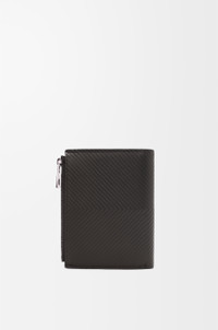 Slim compact wallet in classic calfskin embossed with a chevron pattern. - Six card slots, four slip pockets, one large note pocket - One zipped coin compartment with calfskin pull - Snap button closure - Calfskin lining - Silver embossed LOEWE Colour: Dark Grey Metallic colour: Palladium Main material: Classic Calf Weight: 0.09 kg Height: 11.8 cm Width: 9.3 cm Depth: 1 cm Made in: Spain