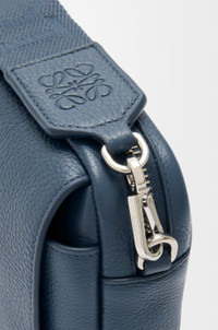 The Pebble messenger is a functional and compact design featuring a double signature Anagram Pebble. This small version is crafted in supple grained calfskin. - Detachable and adjustable LOEWE webbing strap - Zip closure - One front pocket with magnetic closure, one internal slip pocket - Suede lining - Silver embossed LOEWE, Anagram Pebble Colour: Indigo Dye Metallic colour: Palladium Main material: Supple Grained Calf Strap length: 129-76 cm Strap drop: 32-59 cm Weight: 0.43 kg Height: 12.5 cm Width: 20 cm Depth: 6 cm Made in: Spain
