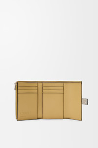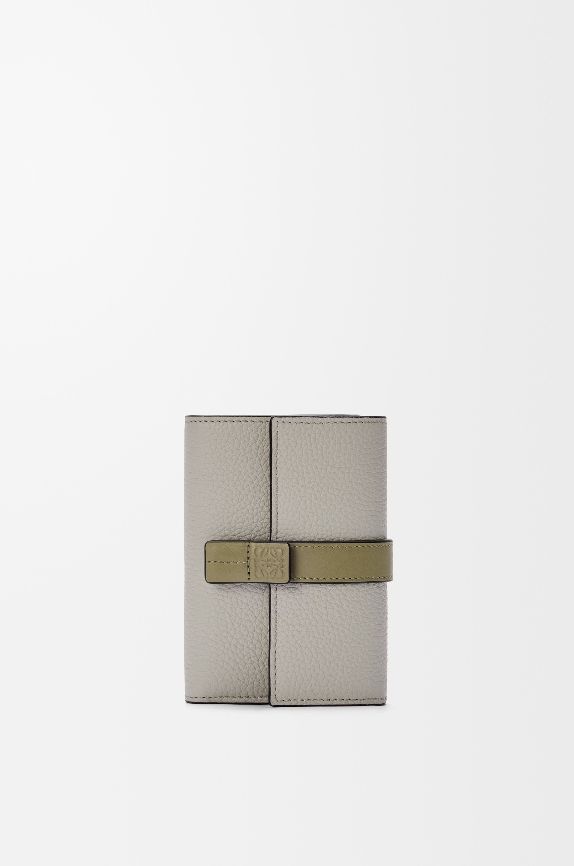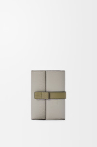 Small vertical wallet in soft grained calfskin in contrasting colours. - Six card slots - Two small pockets, one larger pocket - One zipped coin compartment - Snap button closure - Calfskin lining - Embossed Anagram Colour: Shell Grey/Eucalyptus Metallic colour: Palladium Main material: Soft Grained Calf Weight: 0.1 kg Height: 7.5 cm Width: 12 cm Depth: 2.5 cm Made in: Spain