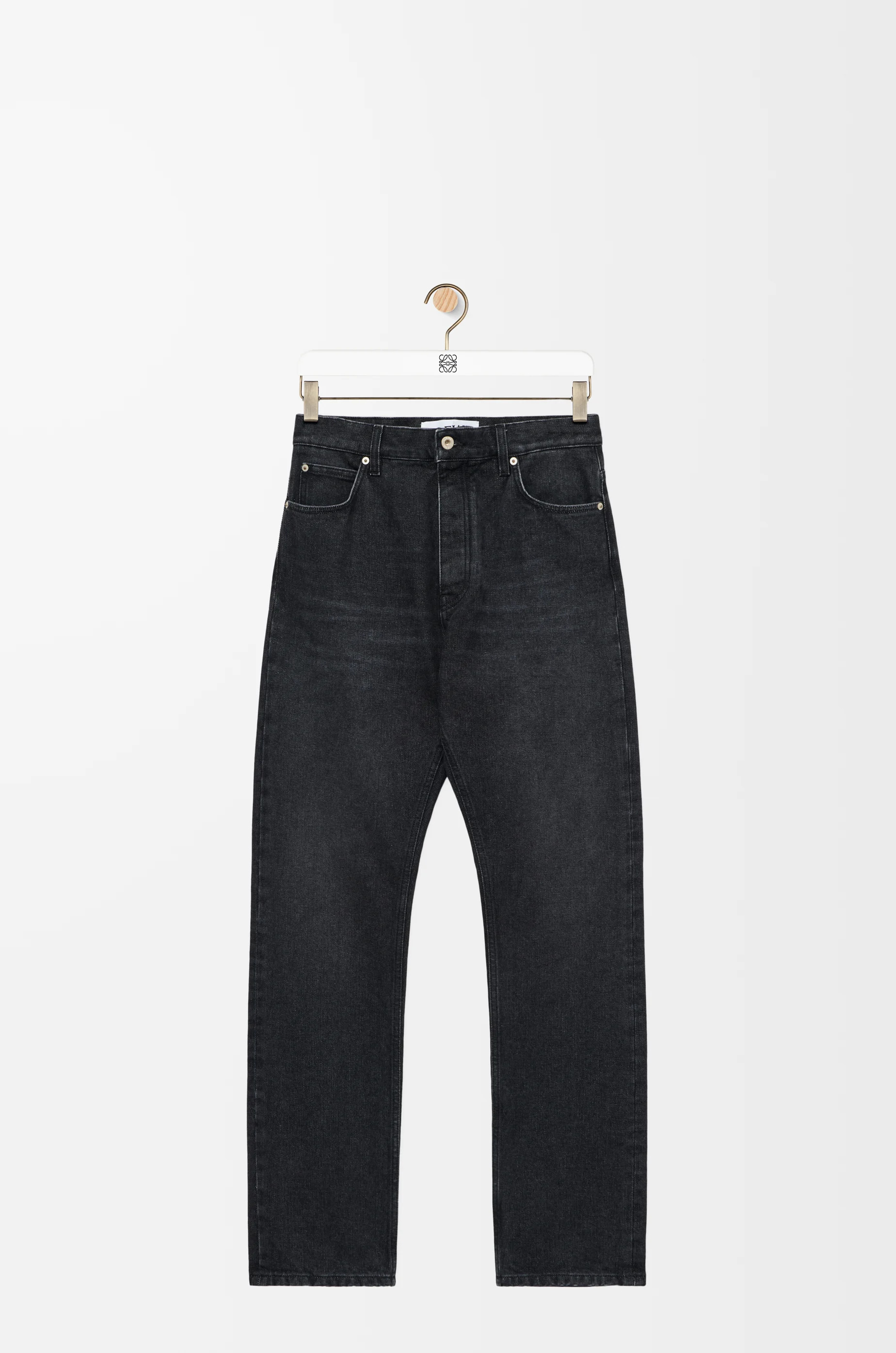 Straight leg jeans crafted in medium-weight washed cotton denim. - Regular fit - Regular length - Mid waist - Straight leg - Belt loops - Concealed button fastening - Five pocket style - LOEWE embossed leather patch placed at the back Details - Colour: Washed Black - Main material: Cotton - Weight: 0.5 kg - Model ID: H526Y11W29 - Made in: Italy