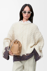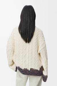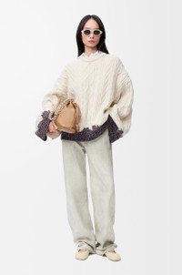 Sweater in medium-weight wool featuring contrast mouline-yarn cuffs and hem. - Oversized fit, regular length - Round neck - Ribbed collar, cuffs and hem - Anagram embossed leather patch placed at the back Colour: Ecru/Brown Main material: Wool Weight: 1.11 kg Made in: Italy Materials & care Main Material: 100% wool