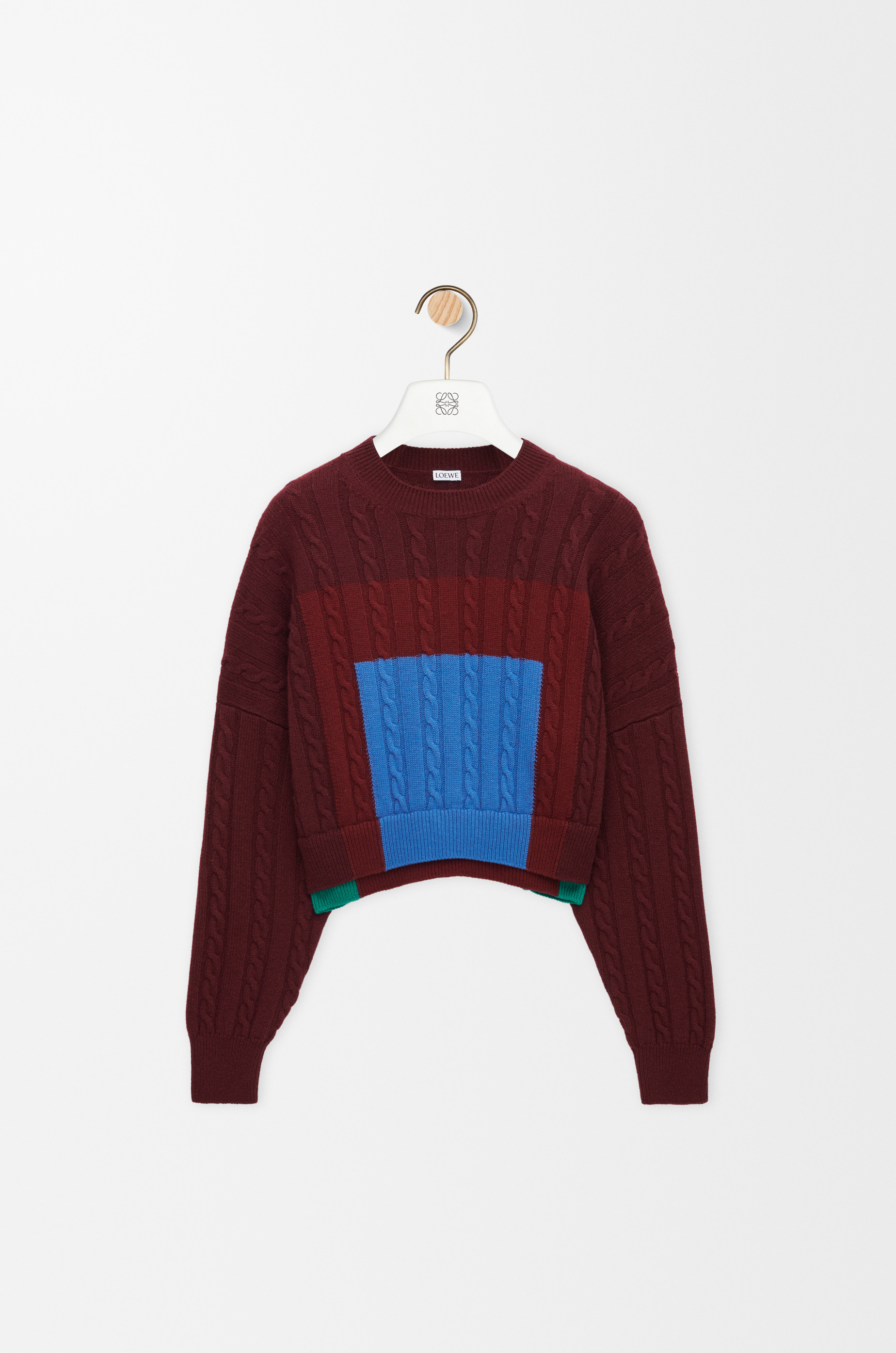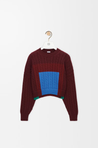 Sweater in medium-weight textured wool featuring placed intarsia squares inspired by Josef Albers's "Homage to the Square" series and a double layer hem. This sweater is part of the LOEWE x Albers collection. - Relaxed fit, short length - Round neck - Ribbed neck, cuffs and hem - Anagram embossed rubber patch placed at the back Colour: Green/Red/Multicolor Main material: Wool Weight: 0.5 kg Made in: Italy Materials & care Main Material: 100% wool