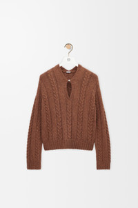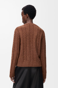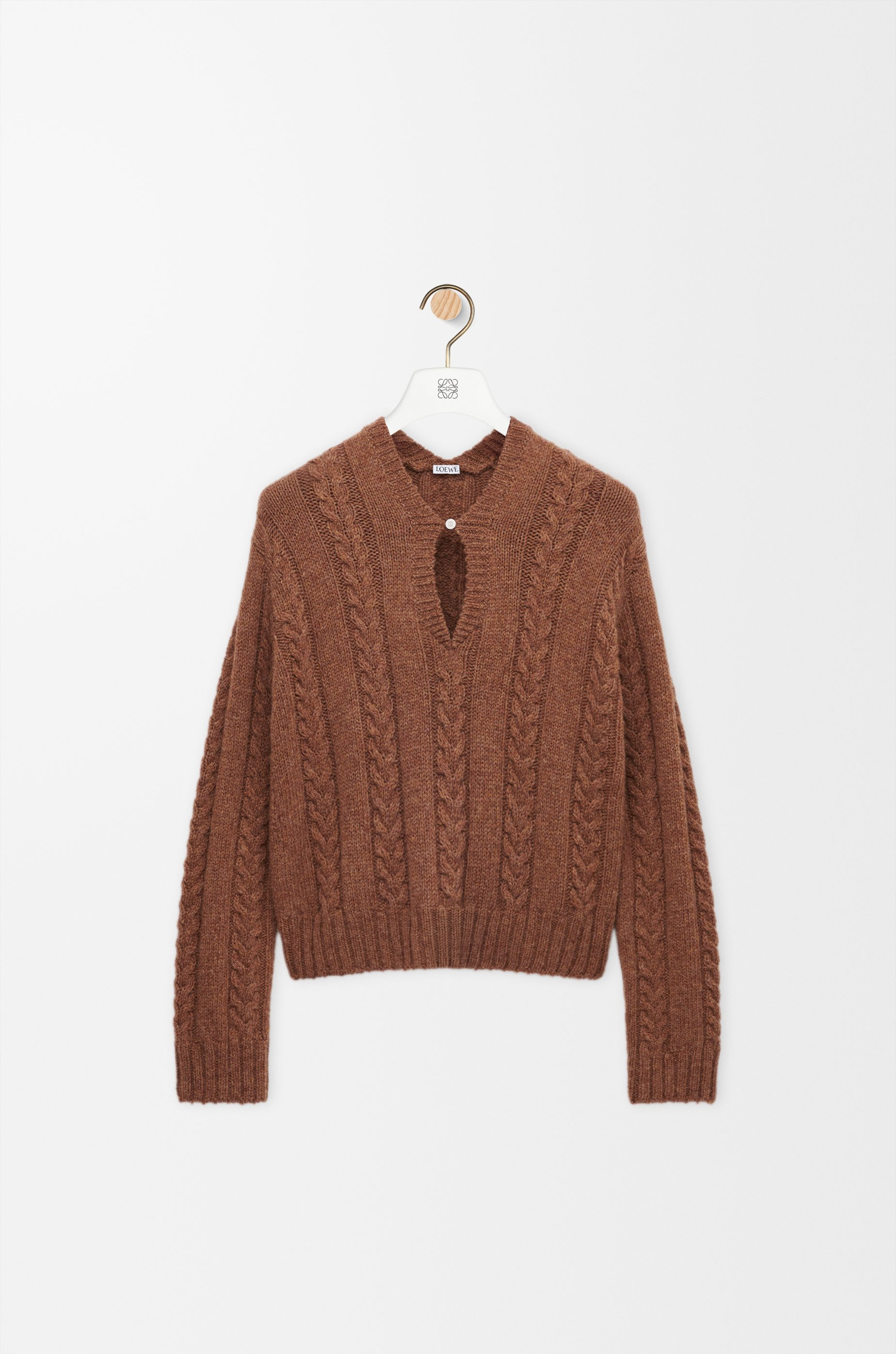 Sweater in medium-weight textured wool mouline featuring a V-neck with Anagram engraved fastening. - Regular fit, regular length - Ribbed collar, cuffs and hem - Anagram leather tab placed at the side Colour: Brown Main material: Wool Weight: 0.4 kg Made in: Italy Materials & care Main Material: 100% wool