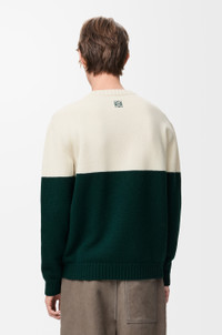 Sweater in medium-weight wool featuring a two-tone design and a Futurist Cat embroidery on the chest. This sweater is inspired by Louis Wain's "Futurist Cats" porcelain vase series. - Regular fit, regular length - Jersey stitch - Round neck - Ribbed collar, cuffs and hem - Contrast Anagram embroidery placed at the back Colour: White/Green Main material: Wool Weight: 0.59 kg Made in: Italy Materials & care Main Material: 99% wool 1% polyamide