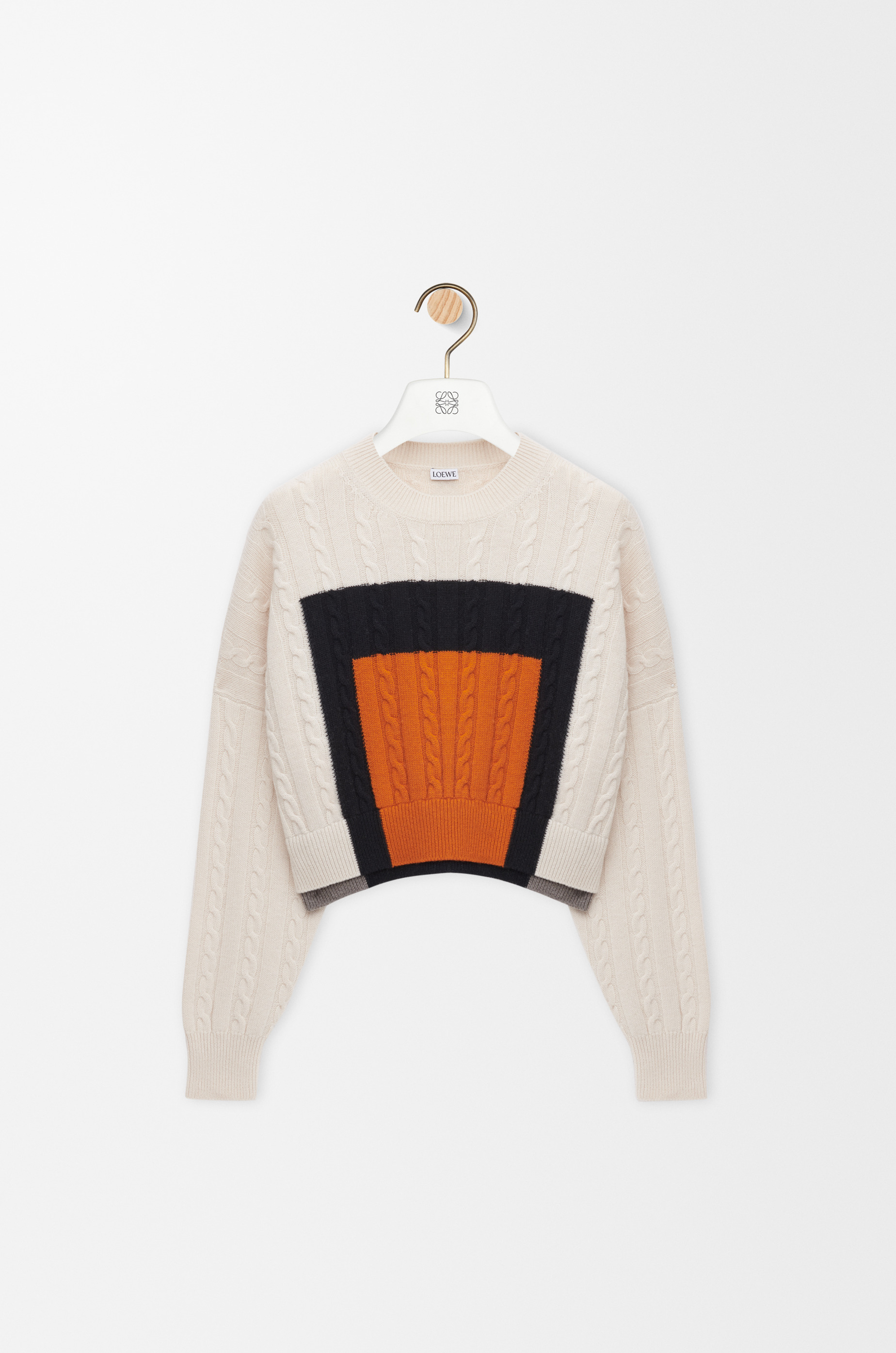 Sweater in medium-weight textured wool featuring placed intarsia squares inspired by Josef Albers's "Homage to the Square" series and a double layer hem. This sweater is part of the LOEWE x Albers collection. - Relaxed fit, short length - Round neck - Ribbed neck, cuffs and hem - Anagram embossed rubber patch placed at the back Colour: Light Ghost/Ginger Orange Main material: Wool Weight: 0.5 kg Made in: Italy Materials & care Main Material: 100% wool