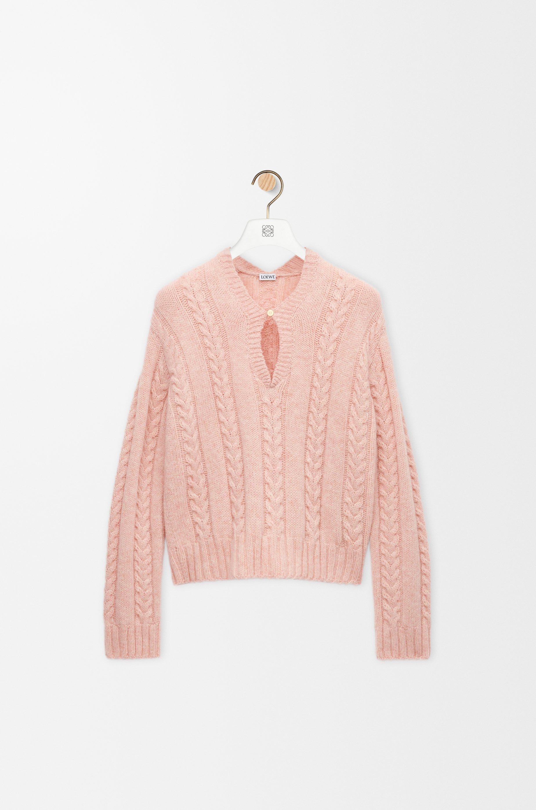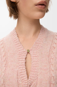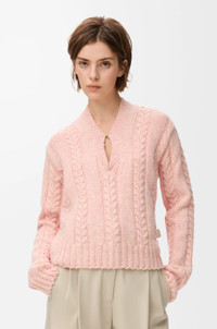 Sweater in medium-weight textured wool mouline featuring a V-neck with Anagram engraved fastening. - Regular fit, regular length - Ribbed collar, cuffs and hem - Anagram leather tab placed at the side Colour: Pink Main material: Wool Weight: 0.4 kg Made in: Italy Materials & care Main Material: 100% wool