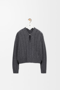 Sweater in medium-weight textured wool mouline featuring a V-neck with Anagram engraved fastening. - Regular fit, regular length - Ribbed collar, cuffs and hem - Anagram leather tab placed at the side Colour: Grey Main material: Wool Weight: 0.4 kg Made in: Italy Materials & care Main Material: 100% wool