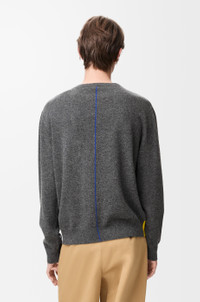 Sweater in medium-weight wool featuring a contrast two-tone intarsia detail at the hem and a contrast intarsia stripe at the back. - Regular fit, regular length - Jersey stitch - Round neck - Ribbed collar, cuffs and hem - Contrast Anagram embroidery placed on the chest Colour: Grey Main material: Wool/polypropylene Weight: 0.3 kg Made in: Italy Materials & care Main Material: 98% wool 1% polyamide 1% elastane