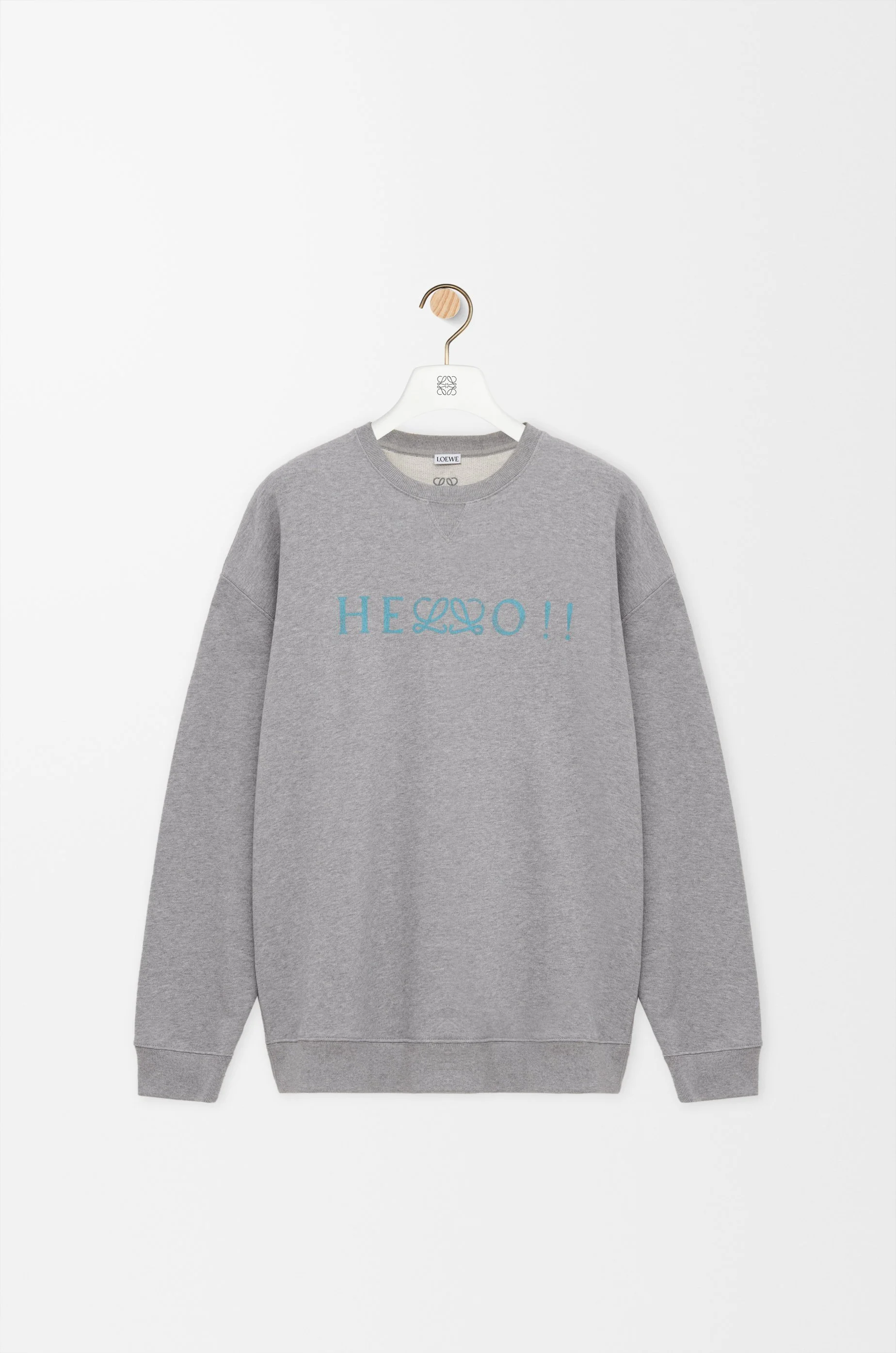 Sweatshirt in medium-weight loopback cotton fleece featuring a Hello Anagram screenprint at the front. - Relaxed fit, regular length - Crew neck - Ribbed collar, cuffs and hem - V stitch detail at the front - Anagram embroidery placed at the back Colour: Grey Melange Main material: Cotton Weight: 0.62 kg Made in: Portugal Materials & care Main Material: 100% cotton