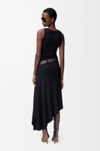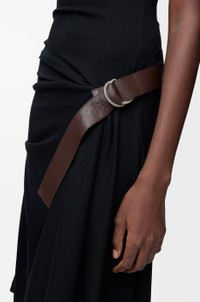 Dress in lightweight stretch ribbed cotton featuring an asymmetric silhouette with a draped front and a leather belt at the side. - Regular fit, mid length - Scoop neck - LOEWE engraved D-ring, Anagram embroidery placed at the back Colour: Black Main material: Cotton/elastane Weight: 0.24 kg Made in: Portugal Materials & care Main Material: 97% cotton 3% elastane
