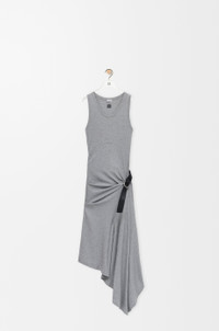 Dress in lightweight stretch ribbed cotton featuring an asymmetric silhouette with a draped front and a leather belt at the side. - Regular fit, mid length - Scoop neck - LOEWE engraved D-ring, Anagram embroidery placed at the back Colour: Grey Melange Main material: Cotton/elastane Weight: 0.24 kg Made in: Portugal Materials & care Main Material: 97% cotton 3% elastane