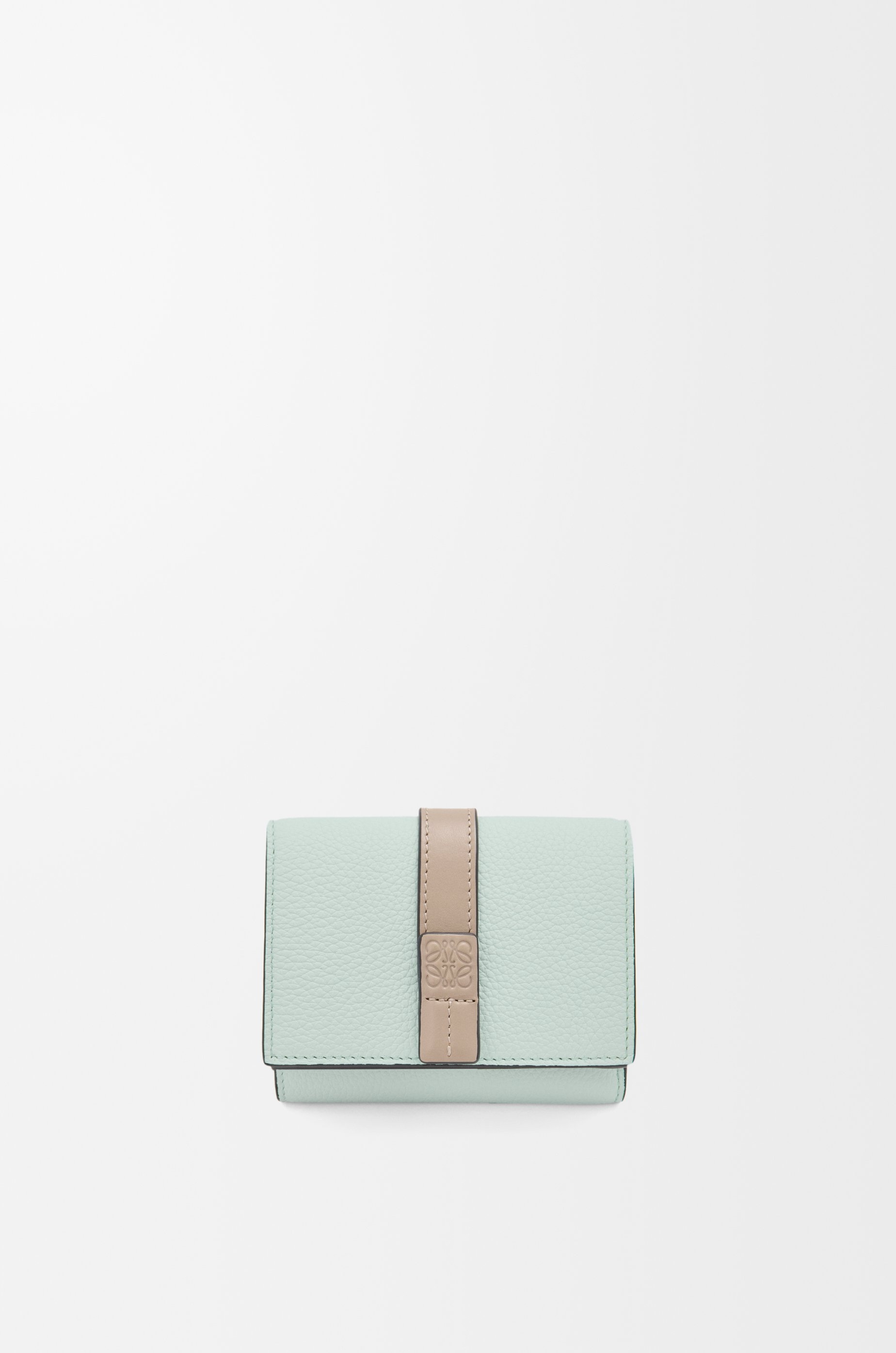 Trifold wallet in soft grained calfskin. - Six card slots, one large pocket - One coin compartment with snap button closure - Snap button closure - Calfskin lining - Embossed Anagram Colour: Frozen/Clay Metallic colour: Palladium Main material: Soft Grained Calf Weight: 0.11 kg Height: 7.8 cm Width: 10.2 cm Depth: 3.8 cm Made in: Spain