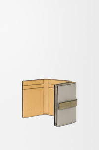 Trifold wallet in soft grained calfskin. - Six card slots, one large pocket - One coin compartment with snap button closure - Snap button closure - Calfskin lining - Embossed Anagram Colour: Shell Grey/Eucalyptus Metallic colour: Palladium Main material: Soft Grained Calf Weight: 0.11 kg Height: 7.8 cm Width: 10.2 cm Depth: 3.8 cm Made in: Spain