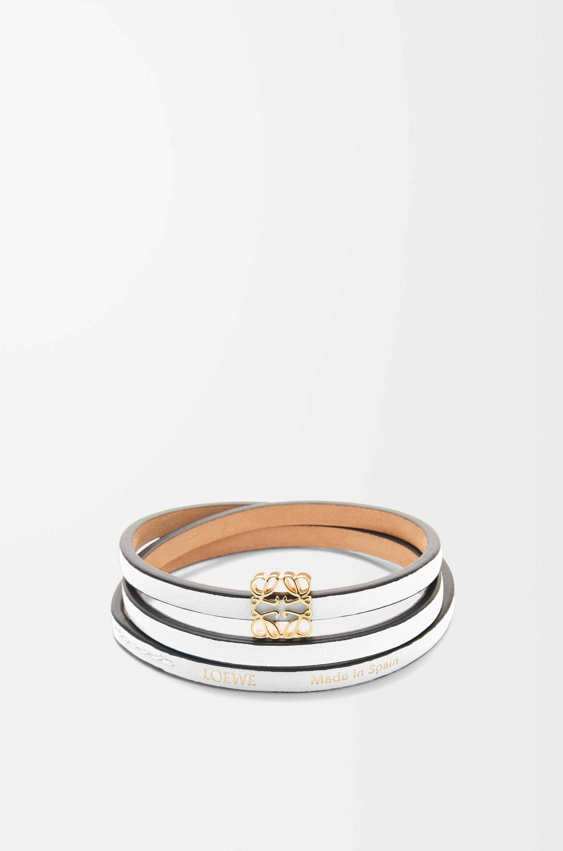 Twist bangle crafted in calfskin with an Anagram dice. - Metallic foil embossed LOEWE Details - Colour: Soft White - Metallic colour: Gold - Main material: Calf - Weight: 0.01 kg - Height (cm): 1.9 - Width (cm): 7.5 - Depth (cm): 7.5 - Height (inch): 0.7 - Width (inch): 3 - Depth (inch): 3 - Model ID: J920240X17 - CIL: 0010874451 - Made in: Spain