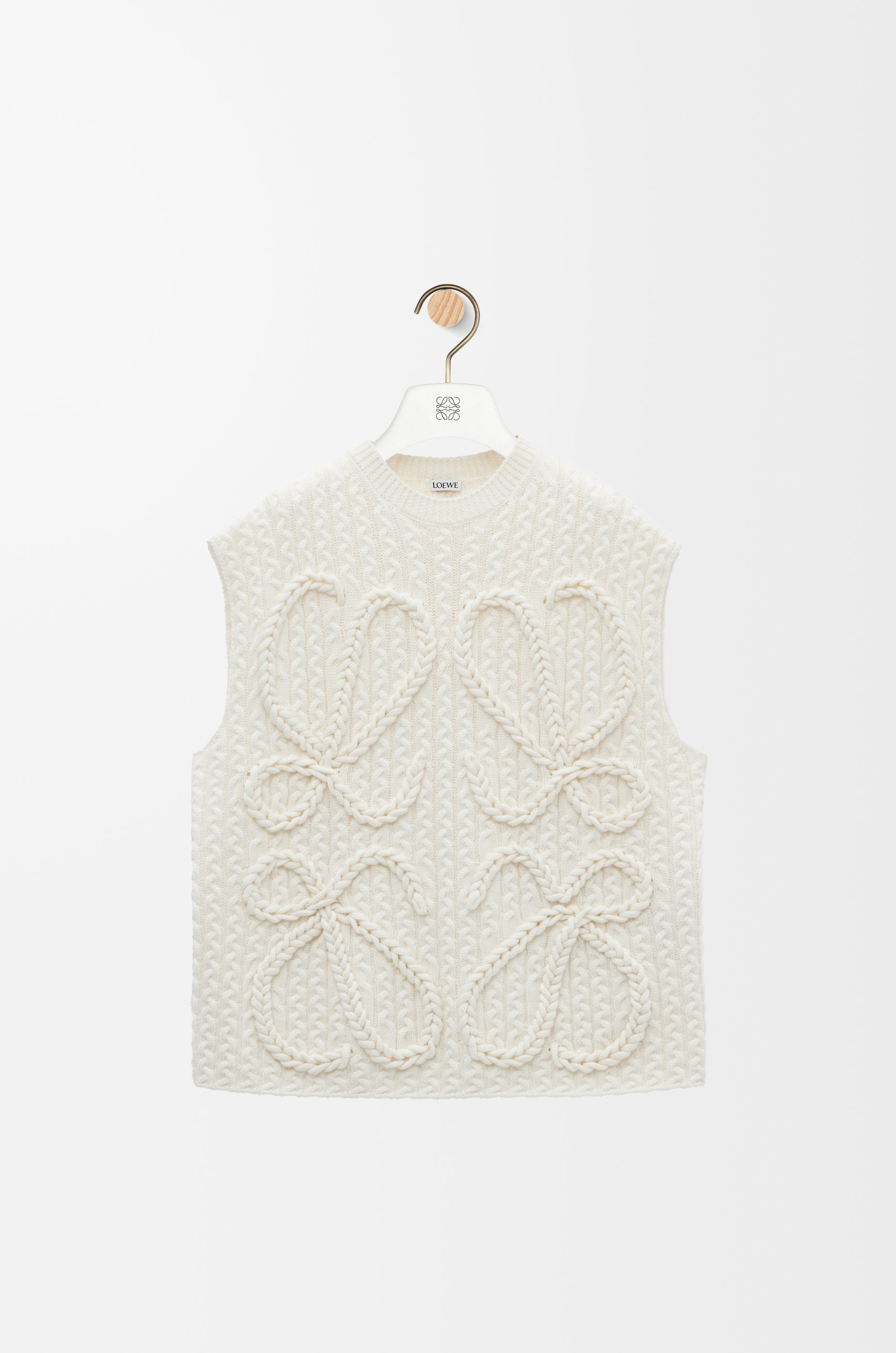 Vest in medium-weight wool featuring a hand-stitched braided Anagram at the front. - Relaxed fit, regular length - Cable stitch - Ribbed round neck Details - Colour : White - Main material : Wool - Weight : 0.7 kg - Model ID : S359Y14KE4 - Made in : Italy