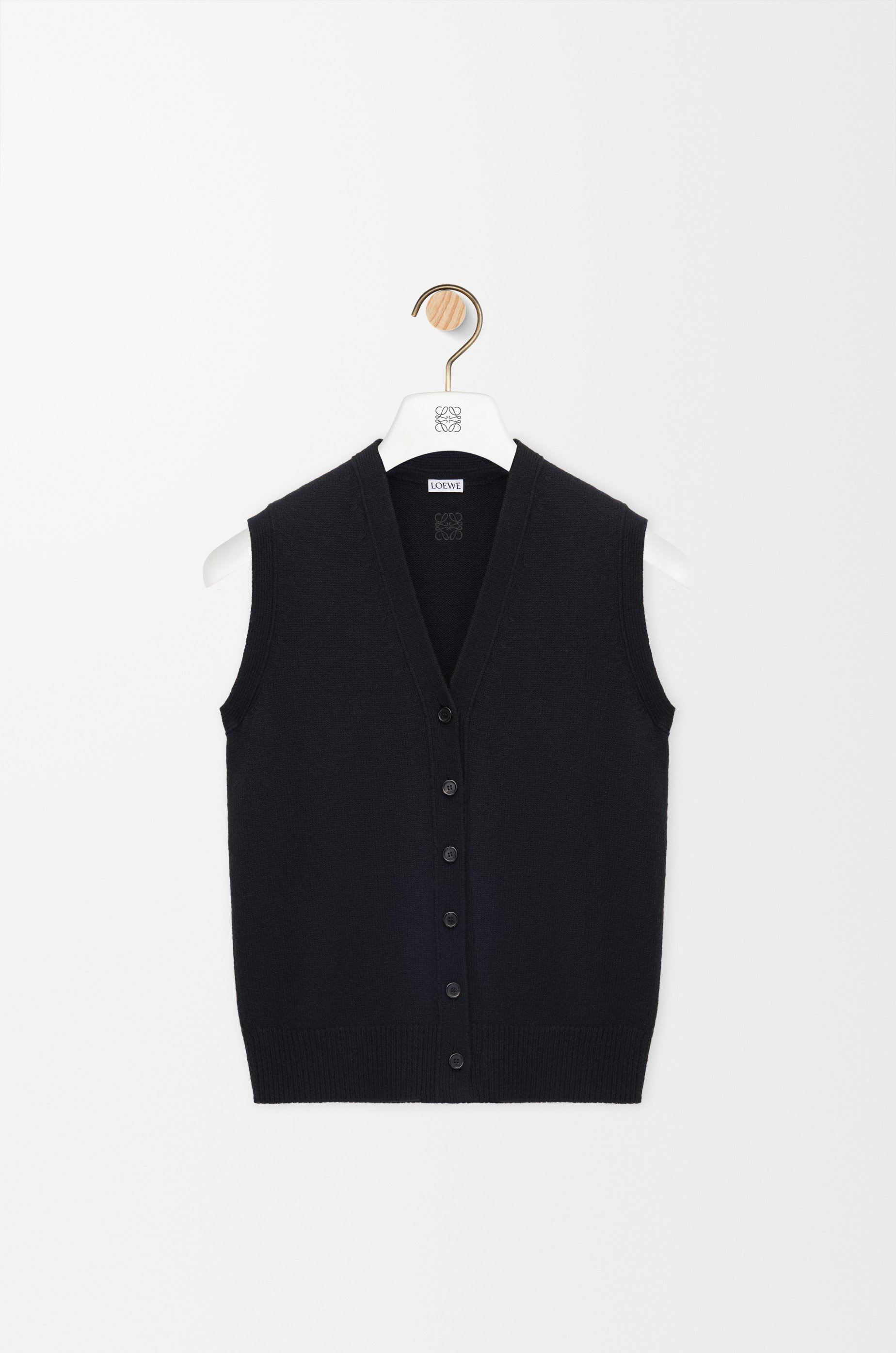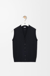 Vest in medium-weight wool. - Regular fit, regular length - V-neck - Button front fastening - Ribbed hem - Anagram embroidery placed at the chest Colour: Black Main material: Wool Weight: 0.2 kg Made in: Italy Materials & care Main Material: 100% wool