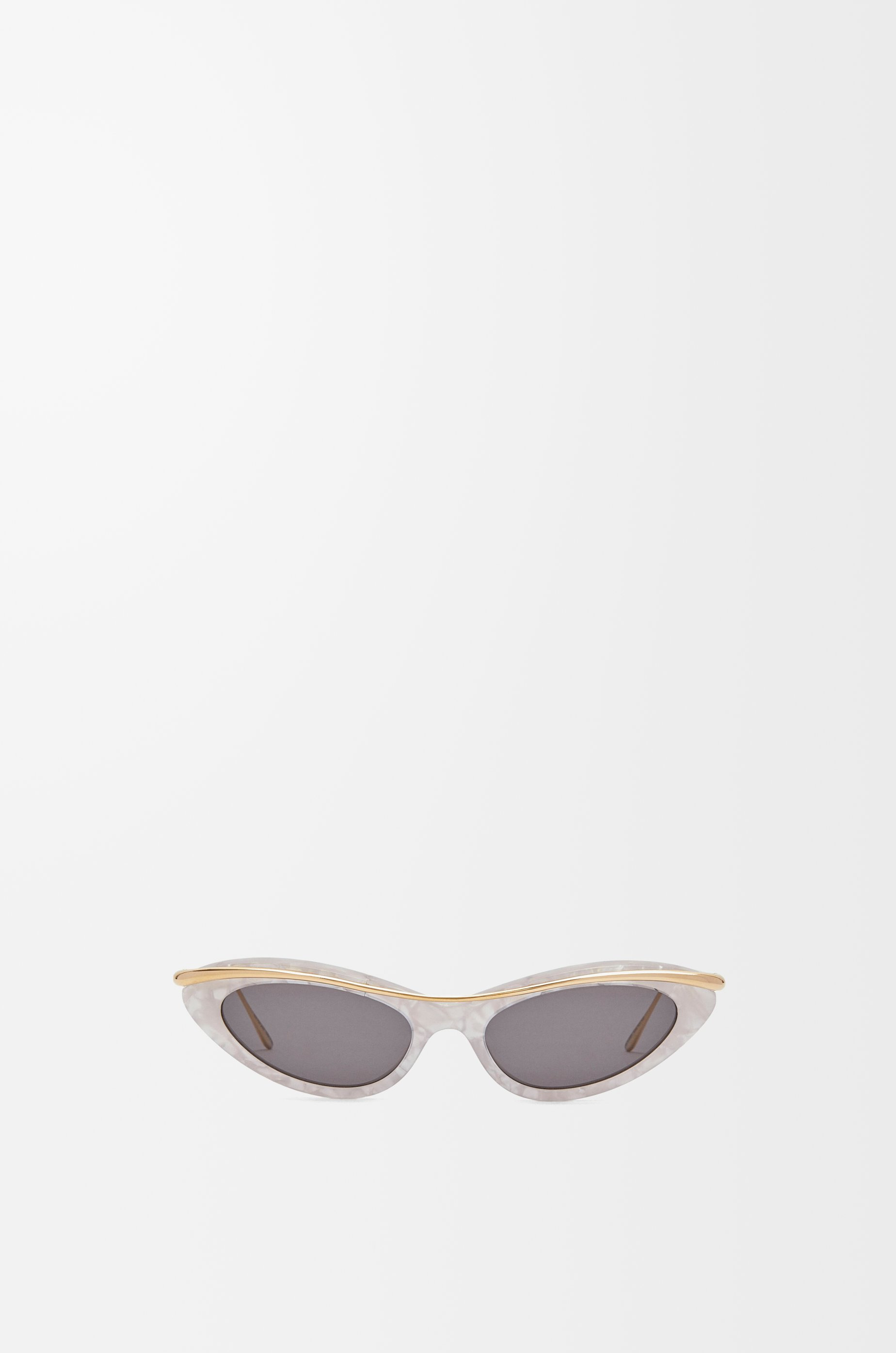 Cateye-shaped sunglasses in an acetate and metal construction. - Universal fit - 100% UVA/UVB protection Details - Colour : Mother Of Pearl - Main material : Acetate - Weight : 0.04 kg - Lens size (cm) : 5.1 - Lens size (inches) : 2.0 - Bridge size (cm) : 17 - Bridge size (inches) : 6.7 - Temple size (cm) : 14 - Temple size (inches) : 5.5 - Model ID : G737270X11 - CIL : - 0011147790 - Made in : Italy