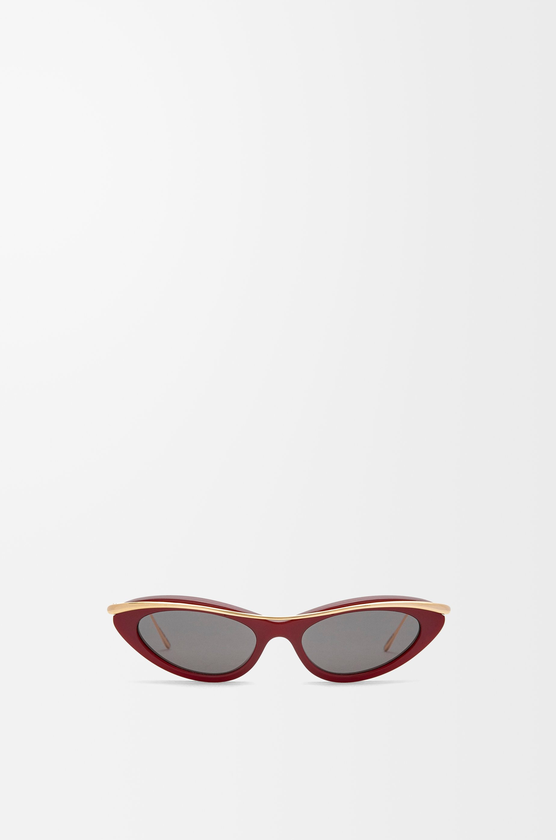 Cateye-shaped sunglasses in an acetate and metal construction. - Universal fit - 100% UVA/UVB protection Details - Colour : Bordeaux - Main material : Acetate - Weight : 0.04 kg - Lens size (cm) : 5.1 - Lens size (inches) : 2.0 - Bridge size (cm) : 17 - Bridge size (inches) : 6.7 - Temple size (cm) : 14 - Temple size (inches) : 5.5 - Model ID : G737270X11 - CIL : - 0011147766 - Made in : Italy