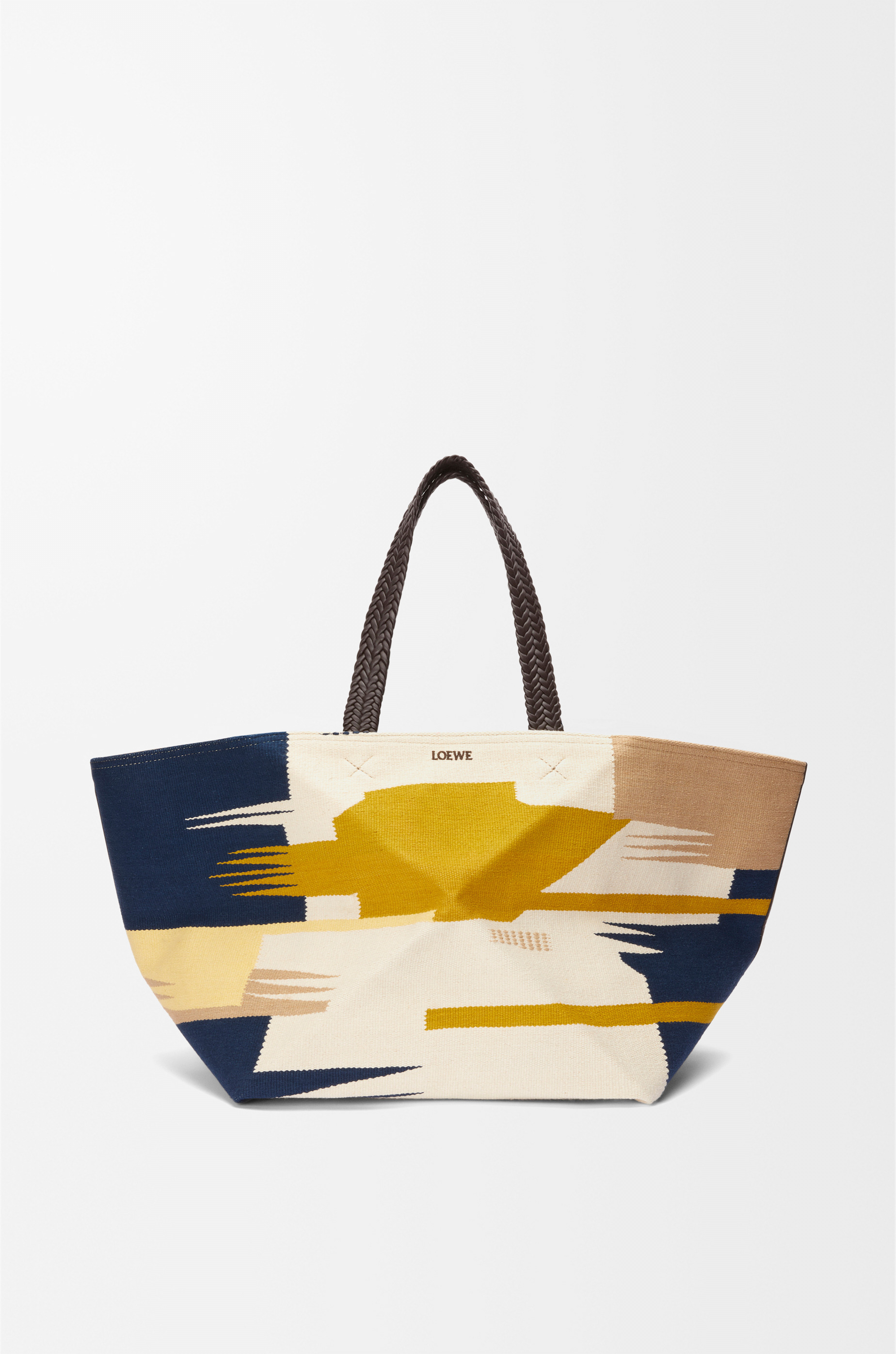 The Puzzle Fold tote is a soft and lightweight design inspired by the iconic bag, whose geometric lines are reimagined as graphic and architectural panels engineered to fold completely flat. This XXL version is crafted in geometric canvas woven by artisans in Burkina Faso as part of a commitment to celebrating craft around the world. It is complemented by braided padded leather handles. - Shoulder or hand carry - Unlined - The handmade nature of the textile may result in some variation between bags. Details - Colour : Multicolor - Main material : Canvas - Strap drop : 27 cm - Handle drop : 26 cm - Weight : 0.875 kg - Height (cm) : 36.5 - Width (cm) : 73 - Depth (cm) : 36.5 - Height (inch) : 14.4 - Width (inch) : 28.7 - Depth (inch) : 14.4 - Model ID : B779PFMX32 - CIL : - 0011142726 - Made in : Spain