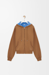 Hoodie in medium-weight bicolor loopback cotton fleece. - Regular fit, regular length - Hooded collar - Zip front fastening - Ribbed cuffs and hem - Anagram embroidery placed on the chest Colour: Beige/Blue Main material: Cotton Weight: 1.1 kg Made in: Portugal Materials & care Main Material: 100% cotton