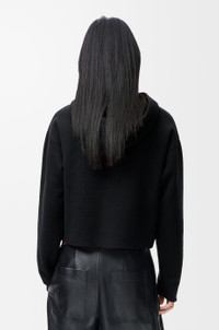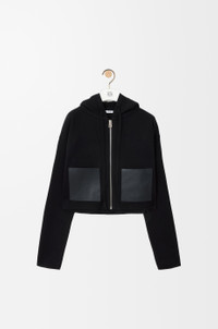 Zip-up hoodie in medium-weight compact wool. - Relaxed fit, short length - Hooded collar - Zip front fastening - Embossed Anagram placed on leather patch pockets Colour: Black Main material: Wool Weight: 0.7 kg Made in: Italy