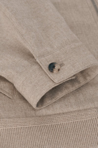 Jacket in medium-weight wool and cashmere flannel featuring a rib knit hem and raglan sleeves. - Regular fit, regular length - High neck with snap button fastening - Zip front fastening, buttoned cuffs - Diagonal welt pockets - Embossed Anagram placed on the chest Colour: Beige Melange Main material: Wool/Cashmere Weight: 0.7 kg Made in: Italy Materials & care Main Material: 88% wool 12% cashmere