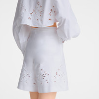 Product Details Reference : 61364PJU007T36 Material : 97% Cotton, 3% Elasthane, Embroidery : 88% Cotton 12% Polyester Lining : 100% Cotton Closing : Hook SIZE & FIT Mannequin informations : The model is 5' 11'' and is wearing a size 4 Length : 47 cm (4 size) Cut : Straight. Choose your usual size.