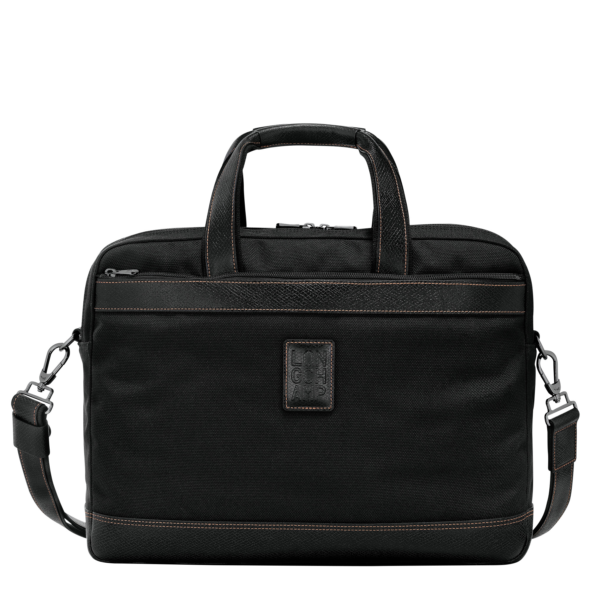 Product Details interior details Computer space : YES Reference : L1487080001 Dimensions : 16.5 in (L - measured at the base of the bag) x 12.2 in (H) x 4.7 in (W) Material : Polyester canvas with inside coating Metallic Hardware : Dark silver color Trimming : Cowhide leather Lining : Textile Weight : 1,470 g Closing : Zipped Exterior details Strap Height : 65- cm / 25.6- in Zipped pocket : 1 Strap : Adjustable and removable interior details Computer space : YES Digital tablet space : YES Zipped pocket : 3 Flat pocket : 3 Phone pocket : 1 Pen pocket : 1