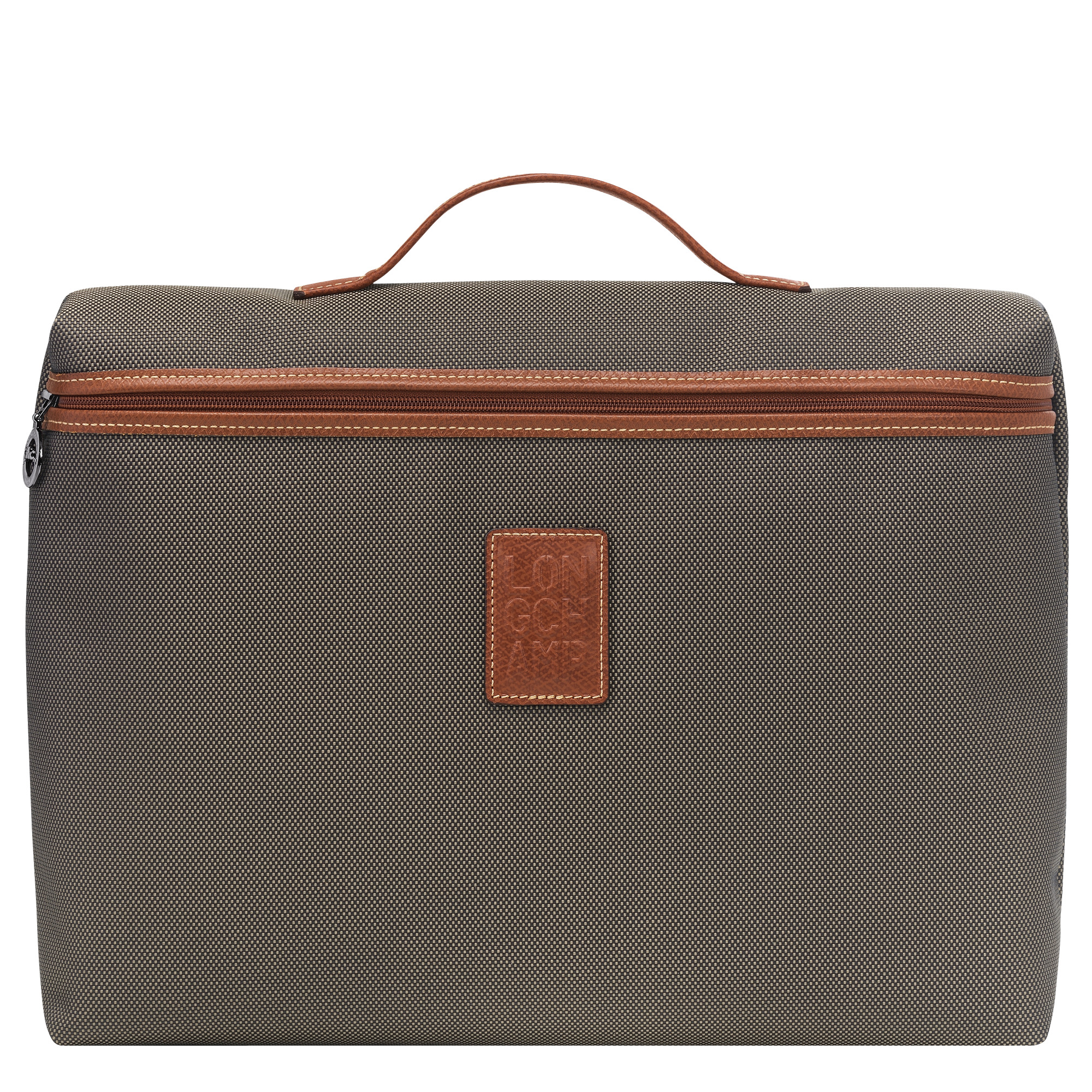 Product Details Reference : L2182080042 Dimensions : 14.6 in (L - measured at the base of the bag) x 11 in (H) x 3.1 in (W) Material : Polyester canvas with inside coating Metallic Hardware : Dark silver color Trimming : Cowhide leather Lining : Textile Weight : 191 g Closing : Zipped and snap closure Exterior details Zipped pocket : 1 interior details Flat pocket : 2 Pen pocket : 1