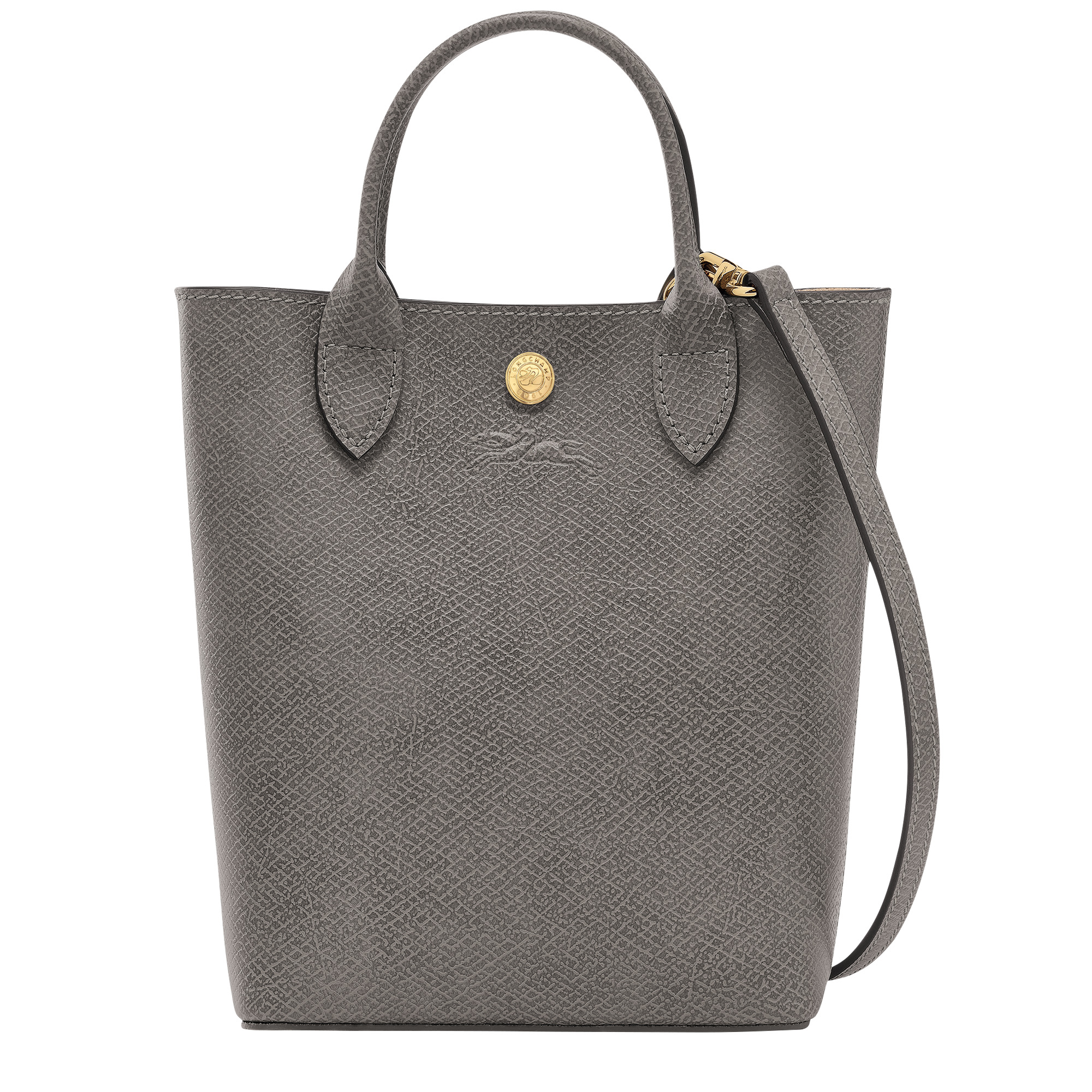 Product Details Reference : 10269HYZP55 Dimensions : 6.3 in (L - measured at the base of the bag) x 8.1 in (H) x 2.8 in (W) Material : Russian leather (cowhide) Metallic Hardware : Gold color Lining : Split velvet cowhide Weight : 0.75 lb Closing : Snap button The leathers of Longchamp bags may have subtle variations. These reflect the vivid nature of the leathers used in our workshops and reveal the authenticity of their appearance as well as their exceptional quality. Exterior details Strap Height : 52-60 cm / 20.5-23.6 in Handle Height : 7 cm / 2.8 in Strap : Adjustable and removable interior details Flat pocket : 1