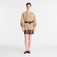 Product Details Reference : 60449ACUM05 Dimensions : 27 in (L) Material : 100% Lambskin leather , Secondary Material: 100% Viscose Collar : Swan collar SIZE & FIT Cut : Loose