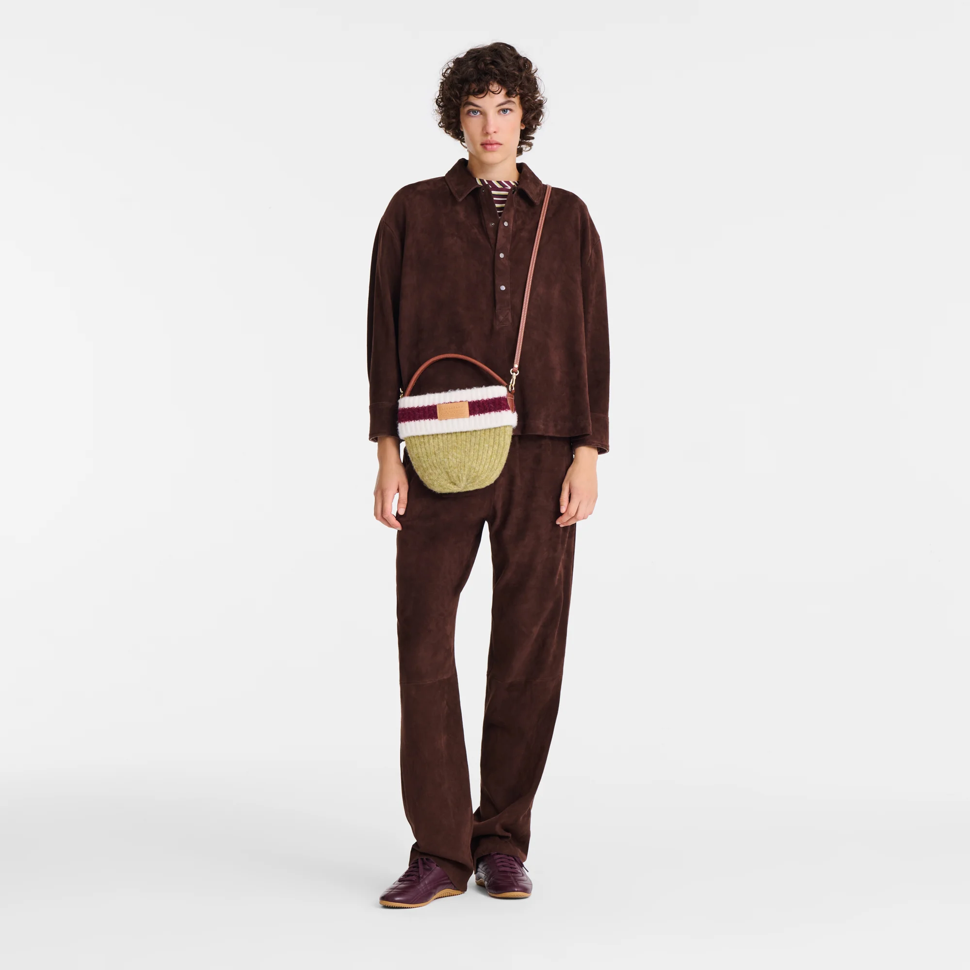 Le Pliage Collection Crossbody bag Pistachio/Burgundy - Knit