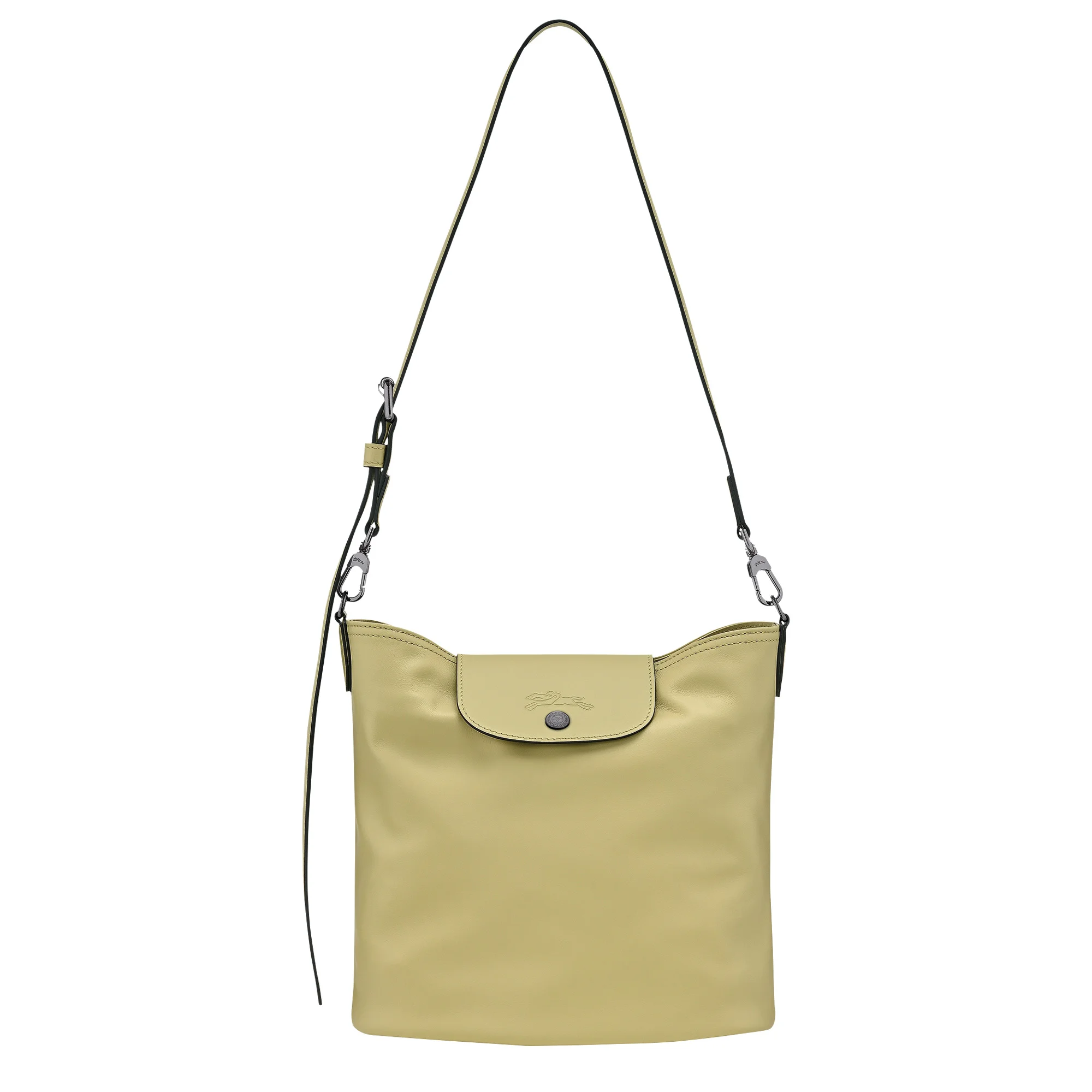 Product Details Reference : 10341987244 Dimensions : 10 in (L - measured at the base of the bag) x 9.4 in (H) x 6.3 in (W) Material : Cowhide leather Metallic Hardware : Dark silver color Weight : 0.97 lb Closing : Snap button The leathers of Longchamp bags may have subtle variations. These reflect the vivid nature of the leathers used in our workshops and reveal the authenticity of their appearance as well as their exceptional quality. Exterior details Strap : Adjustable and removable