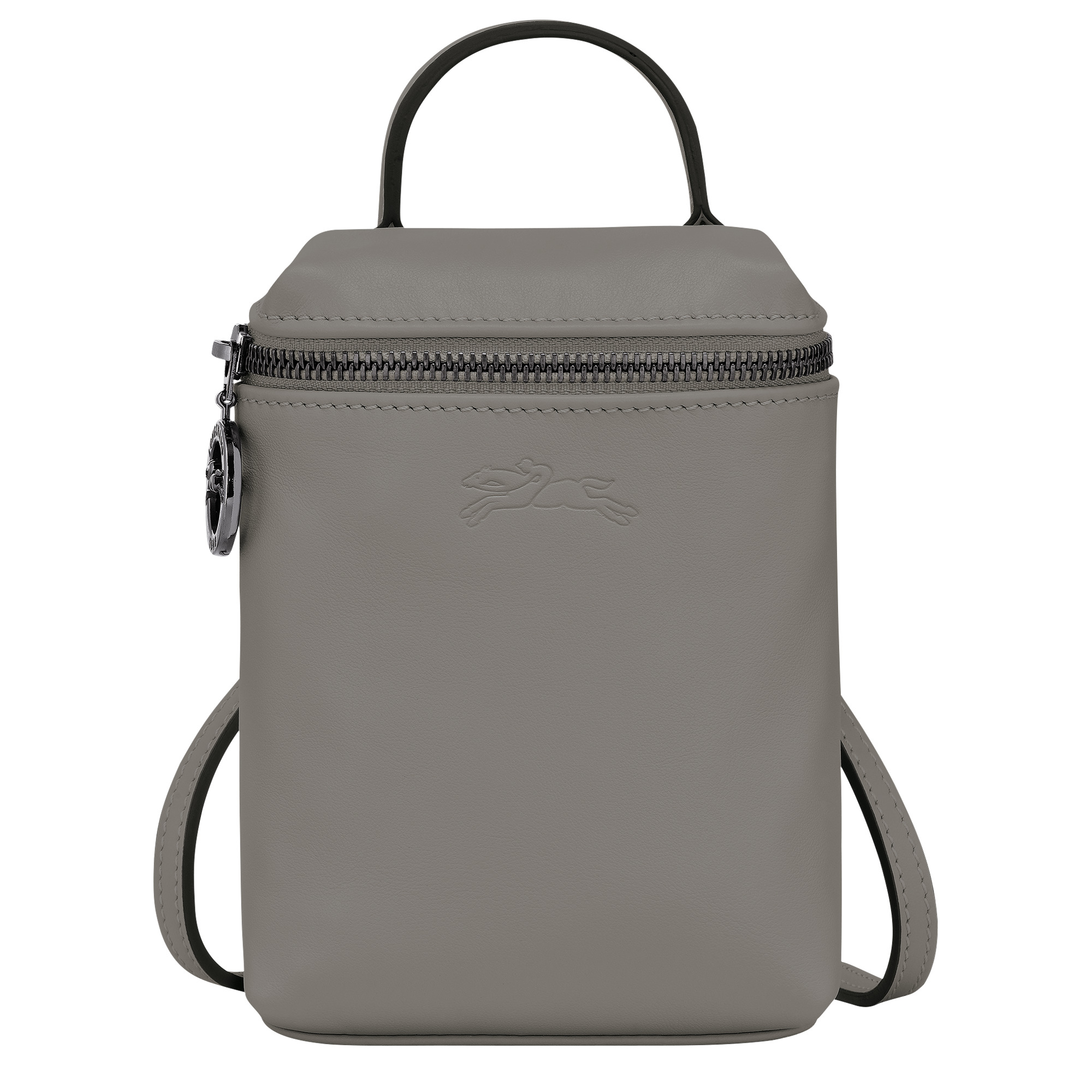Product Details Reference : 10285987P55 Dimensions : 4.3 in (L - measured at the base of the bag) x 6.3 in (H) x 2.4 in (W) Material : Cowhide leather Metallic Hardware : Dark silver color Lining : Recycled polyester - all-over LGP jacquard Weight : 0.36 lb Closing : Zipper The leathers of Longchamp bags may have subtle variations. These reflect the vivid nature of the leathers used in our workshops and reveal the authenticity of their appearance as well as their exceptional quality. Exterior details Strap Height : 50-60 cm / 19.7-23.6 in Handle Height : 5 cm / 2 in Strap : Adjustable and removable interior details Credit card space : 1