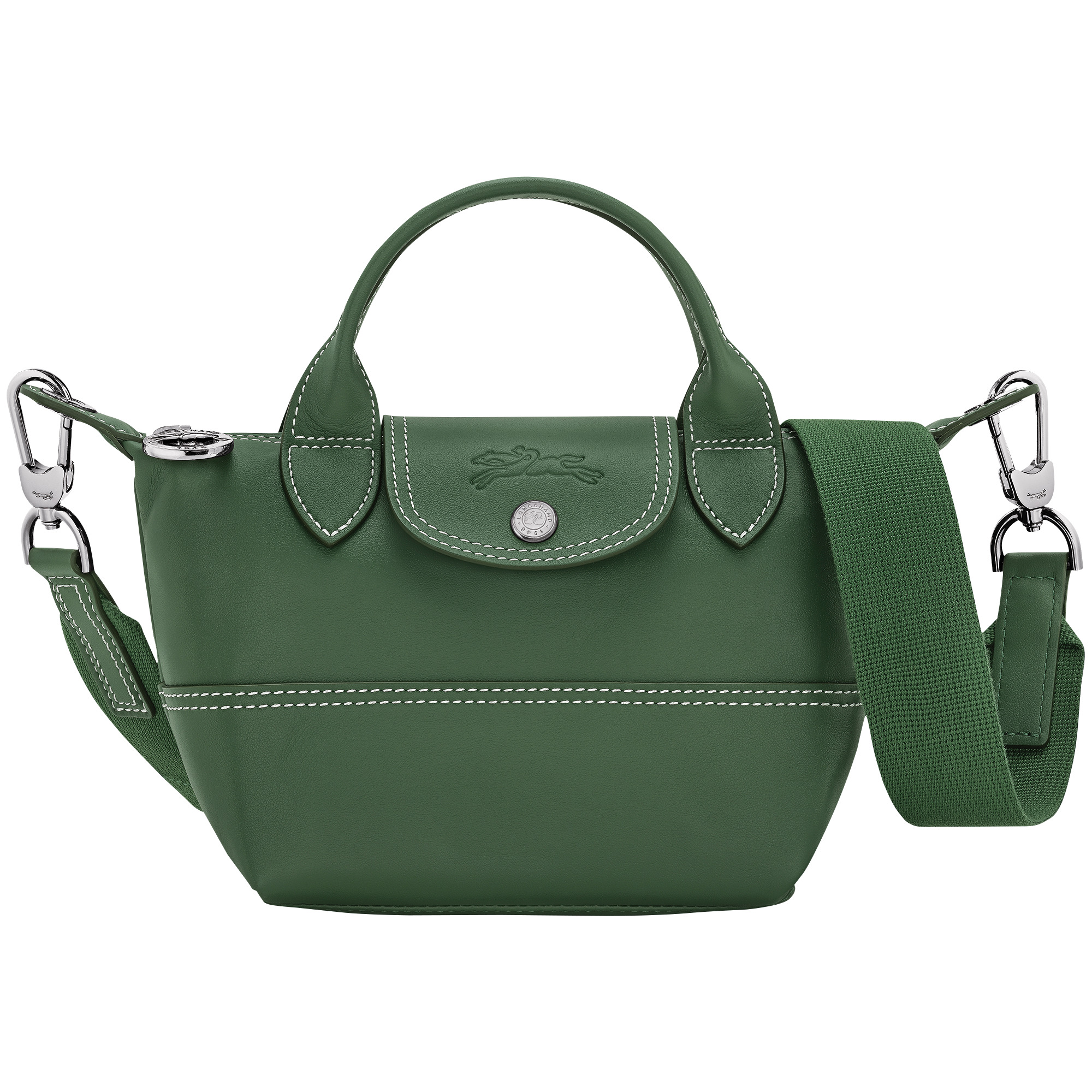 Product Details Reference : L1500HGSP95 Dimensions : 6.7 in (L - measured at the base of the bag) x 5.5 in (H) x 3.9 in (W) Material : Cowhide leather Metallic Hardware : Silver color Trimming : Calfskin leather Lining : Recycled polyester - all-over LGP jacquard Weight : 0.85 lb Closing : Zipper and snap button The leathers of Longchamp bags may have subtle variations. These reflect the vivid nature of the leathers used in our workshops and reveal the authenticity of their appearance as well as their exceptional quality. Exterior details Strap Height : 38-60 cm / 15.0-23.6 in Strap : Adjustable and removable interior details Zipped pocket : 1 Flat pocket : 1