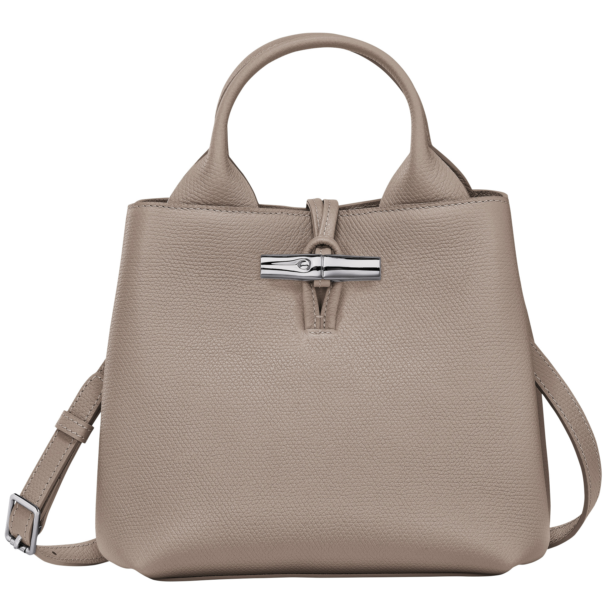 Product Details Reference : 10273HFP266 Dimensions : 7.9 in (L - measured at the base of the bag) x 7.9 in (H) x 5.3 in (W) Material : Cowhide leather Metallic Hardware : Silver color Lining : Recycled polyester - Jacquard Longchamp horses Weight : 1.19 lb Closing : Metal bamboo The leathers of Longchamp bags may have subtle variations. These reflect the vivid nature of the leathers used in our workshops and reveal the authenticity of their appearance as well as their exceptional quality. Exterior details Strap Height : 51-60 cm / 20.1-23.6 in Handle Height : 9 cm / 3.5 in Strap : Adjustable and removable Strap length : 60- cm / 23.6- in interior details Zipped pocket : 1 Flat pocket : 1 Pen pocket : 1 Credit card space : 2