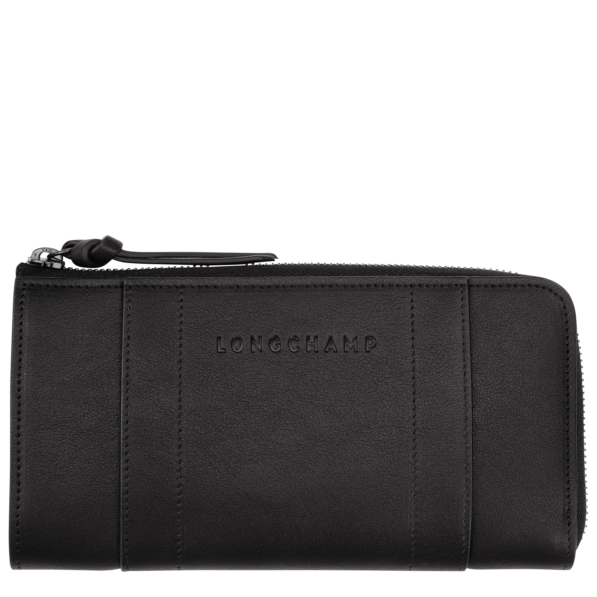 Product Details Reference : L3418HCV001 Dimensions : 7.7 in (L) x 3.9 in (H) Material : Calfskin leather Metallic Hardware : Dark silver color Lining : Recycled polyester - Jacquard Longchamp horses Closing : Zipper interior details Zipped pocket : 1 Flat pocket : 1 Credit card space : 14 Coin slot : YES