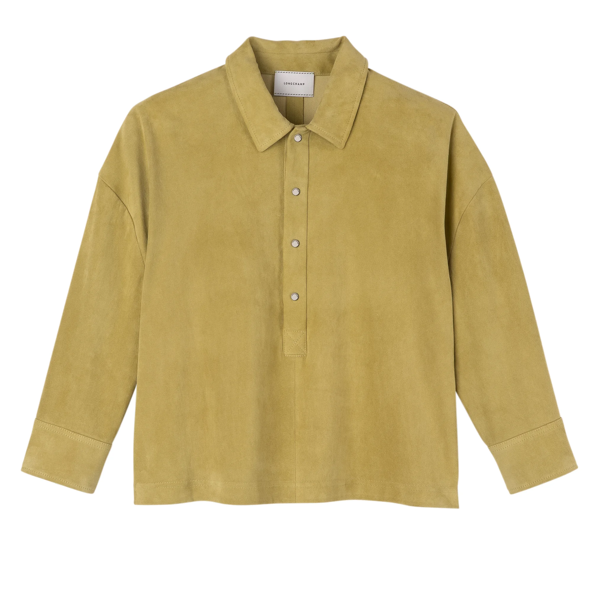 Product Details Reference : 61500ACS2441TS Material : 100% Lambskin leather, Secondary material : 98% Cotton, 2% Elastane Collar : Shirt collar Sleeves : Long sleeves Closing : Snap button SIZE & FIT Mannequin informations : The model is 5' 11'' and is wearing a size 4
