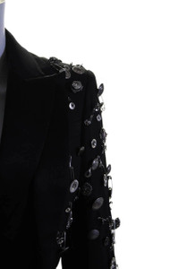 Item:Alexander McQueen FW19 Embelished Button Layered Blazer Color: Black Size : 38 Brand : Alexander McQueen Made in: Italy Composition: 63% Wool, 25% Silk, 12% Polyester Description : Alexander McQueen FW19 Embelished Button Layered Blazer, features a layered construction, with heavy Button and pins embelishments throughout, Wide blazer Collar Button closure Condition: 9/10 Dm for Questions!