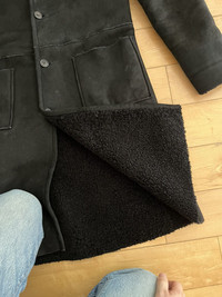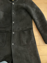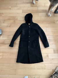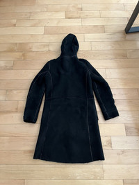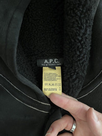 Item: A.P.C. Shearling Hooded Coat Color: Black Size : S Brand : A.P.C Made in: France Composition: 100% Sheep Shearling Description : A.P.C. Shearling Hooded Coat, features a button closure and full sheepskin body, 2 pockets on front, Item is in pre-owned condition and has some slightly visible wear such as fading, it has no hole or stain Condition: 9/10 Retail: 890 Dm for Questions!