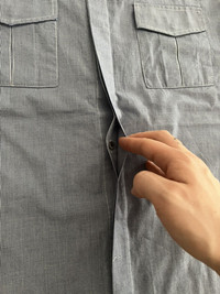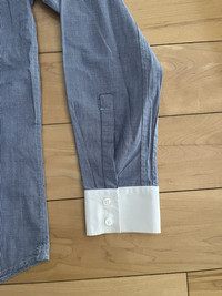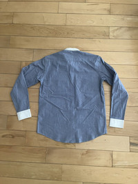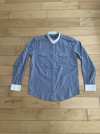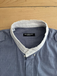 Item: Balmain Military Officer Shirt Color: Blue/White Size : 39 Brand : Balmain Made in: France Composition: 100% Cotton Description : Balmain Military Officer Shirt. Features shoulder straps, hidden button closure, 2 chest pockets, and a stand collar. White cuffs at sleeves with buttons Condition: 9/10 Retail: ? Dm for Questions!
