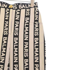 Item:Balmain Striped Logo Pants Color: Black/White Size : 38 Brand : Balmain Made in: Slovakia Composition: 7% Cotton, 20% Polyamide, 3% Elastane Description : Balmain Striped Logo Pants, striped logo throughout, golden button, 4 pockets Condition: 9/10 Dm for Questions!