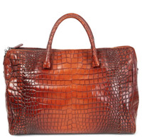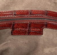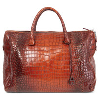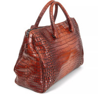 Item: Bottega Veneta Crocodile Duffle Bag Color: Brick Size : OS Brand : Bottega Veneta Made in: Italy Composition: Outer: 100% Crocodile Leather, Lining: 100% Suede Lining Description : Bottega Veneta 'Flannel' bag in ombre brick red Cocco Glace crocodile leather. Closes with a two-way zipper on top. Lined in taupe suede with a zipper pocket against the back. Has been carried with a small stain on tje lining. Overall in excellent condition. Comes with lock, pocket mirror and dust bag. Condition: 9/10 Retail: $65000 Dm for Questions!