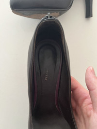 Item: Bottega Veneta Intrecciato Zipper Heels Color: Dark Brown Size : 37.5 Brand : Bottega Veneta Made in: Italy Composition: Labmskin Description : Bottega veneta Heels pumps in Lamb Leather, features a zipper at back with Intrecciato pattern but it is very hard to pull, Round toes shape Condition: 10/10 Retail: 930 Dm for Questions!