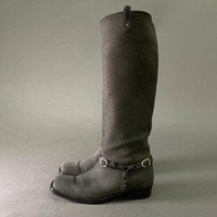 Item:Bottega Veneta Suede Riding Boots Color: Grey Size : 35.5 Brand : Bottega Veneta Made in: Italy Composition:Leather Description : Bottega Veneta Suede Riding Boots, harness, cuban heel, sole has been protected with a vibram type sole, square toe, puller at top, no box Condition: 8/10 Dm for Questions!