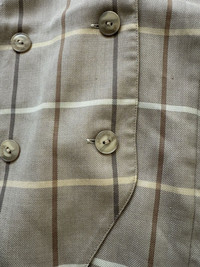 Item:1990's Burberry Check Double Breasted Blazer Color: Nova Check Size : N/A Brand : Burberry Made in: Italy Composition: Virgin Wool Description : 1990's Burberry Check Double Breasted Blazer, features a Double Breasted Button Closure with branded Burberry Button, Notched Lapel Collar, Cuffs at Sleeves, Unlined, Very Lightweight virgin wool fabric Condition: 8/10 - Light fading, couple pulled thread overall in great condition for its age Dm for Questions!